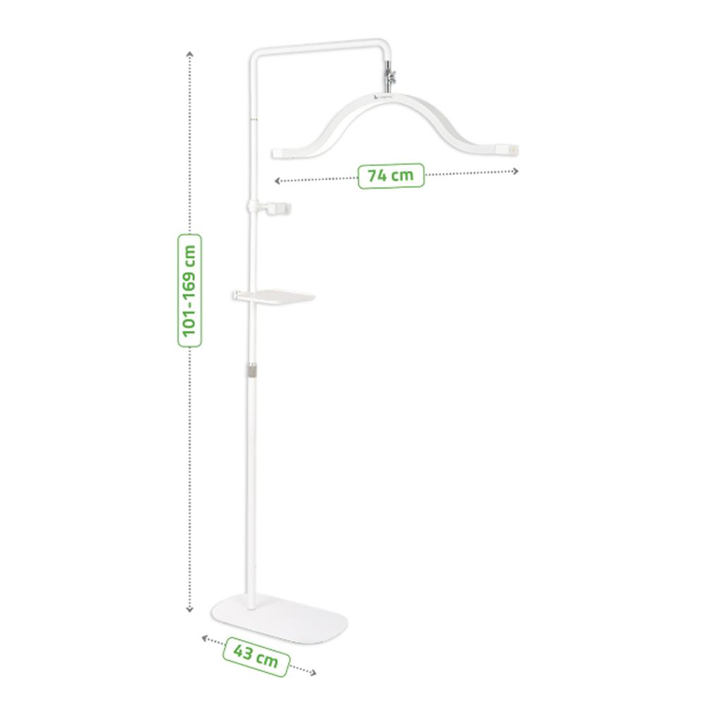 Ergonomic design: Adjustable height 101–169 cm and arm length 74 cm for comfortable use.