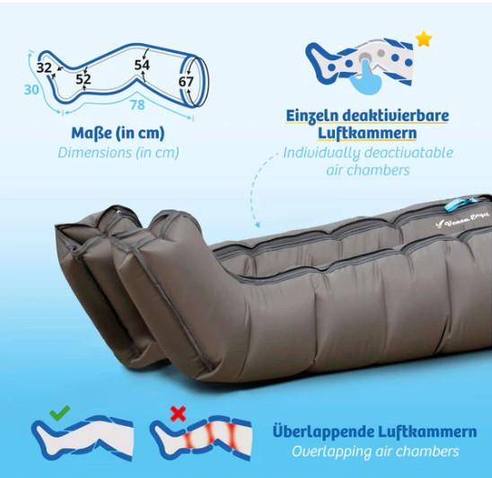 Pressotherapy is performed with a medical technology machine and consists of air duct zones that exert gradual pressure on the various muscle groups. Thus, we have all the benefits of a lymphatic massage along with additional stimulation of the circulatory system.Contains 6 air chambers, digital display, remote control, 6 massage programs pressure.