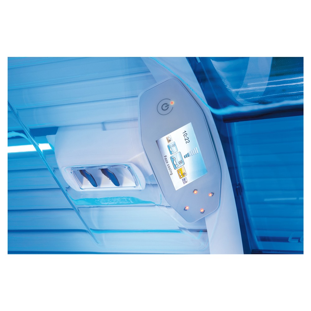 The X5 34 SLi Balance is equipped with 180W PREMIUM Balanced E-Power lamps and three 400W facial tanners with BPS filter. ContourPlus is the ergonomically shaped acrylic shield that supports the entire body, ensuring maximum comfort during the tanning session. It features a stylish full-color display that allows the user to navigate with ease. The many additional options it offers transform the X5 into a luxurious tanning bed in no time. Thanks to intelligent cooling, the X5 starts your tanning session almost silently, with the cooling mechanism responding to the temperature of the unit.