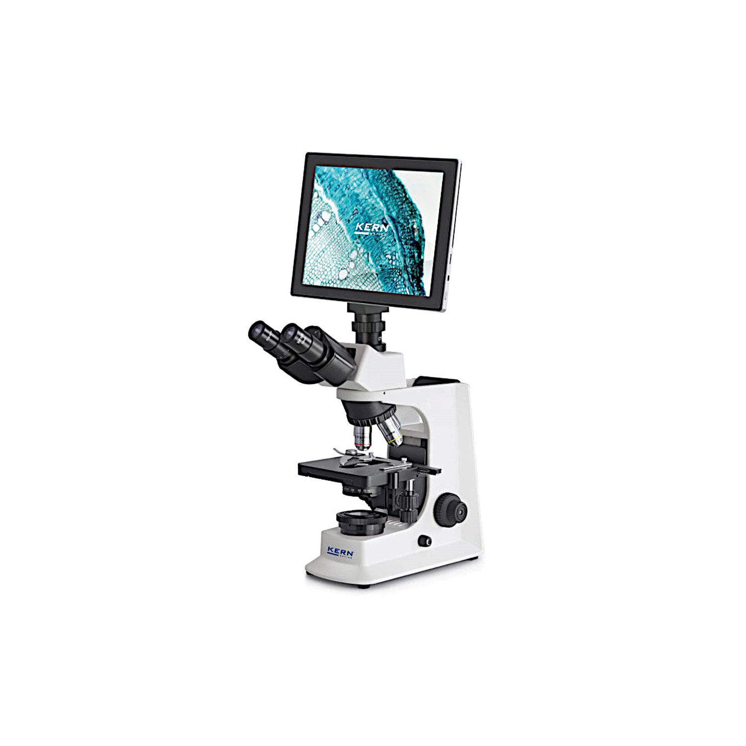 Kern's OBL range features high-performance microscopes with excellent image fidelity to provide you with a complete digital solution for your research and diagnosis. Optionally supplied with a custom tablet or C-mount camera. Of course, the appropriate C-mount adapter is included in the delivery. The OBL-1 series stands out through the infinity optical unit and is therefore ideal for all lighting applications emitted for the most demanding users. The sturdy and ergonomic base of the base guarantees safe and comfortable work. Depending on the application, it is possible to provide powerful, continuously adjustable 3 W LED lighting (Philips). The fixed, pre-centered and focused 1.25 ABBE condenser with aperture and field aperture gives you simplified Koehler lighting without having to move the center. The custom KERN ODC 241 tablet camera has been specially developed for simple, convenient and direct display of the sample on the screen. The custom C-mount camera is available in various versions and can be used anywhere. A wide variety of different eyepieces, lenses, single polarization unit and dark field kit are also available. Delivery includes a protective dust cover, eye cups, and instructions for use in various languages.