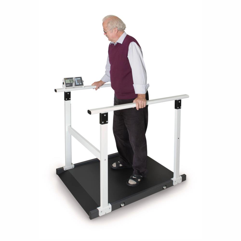 Especially suitable for weighing patients in wheelchairs, because the low-profile platform can be approached from either side and it has a memory function for tare weights for up to five (power) wheelchairs