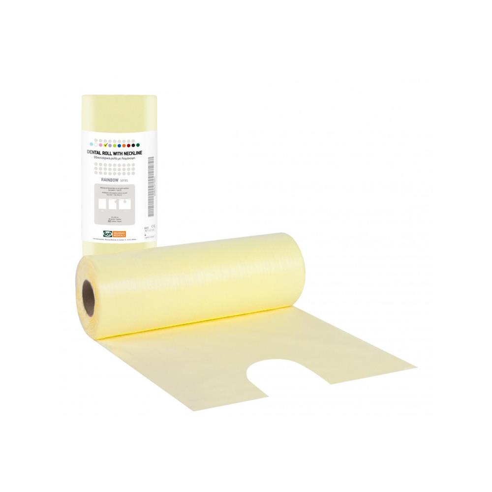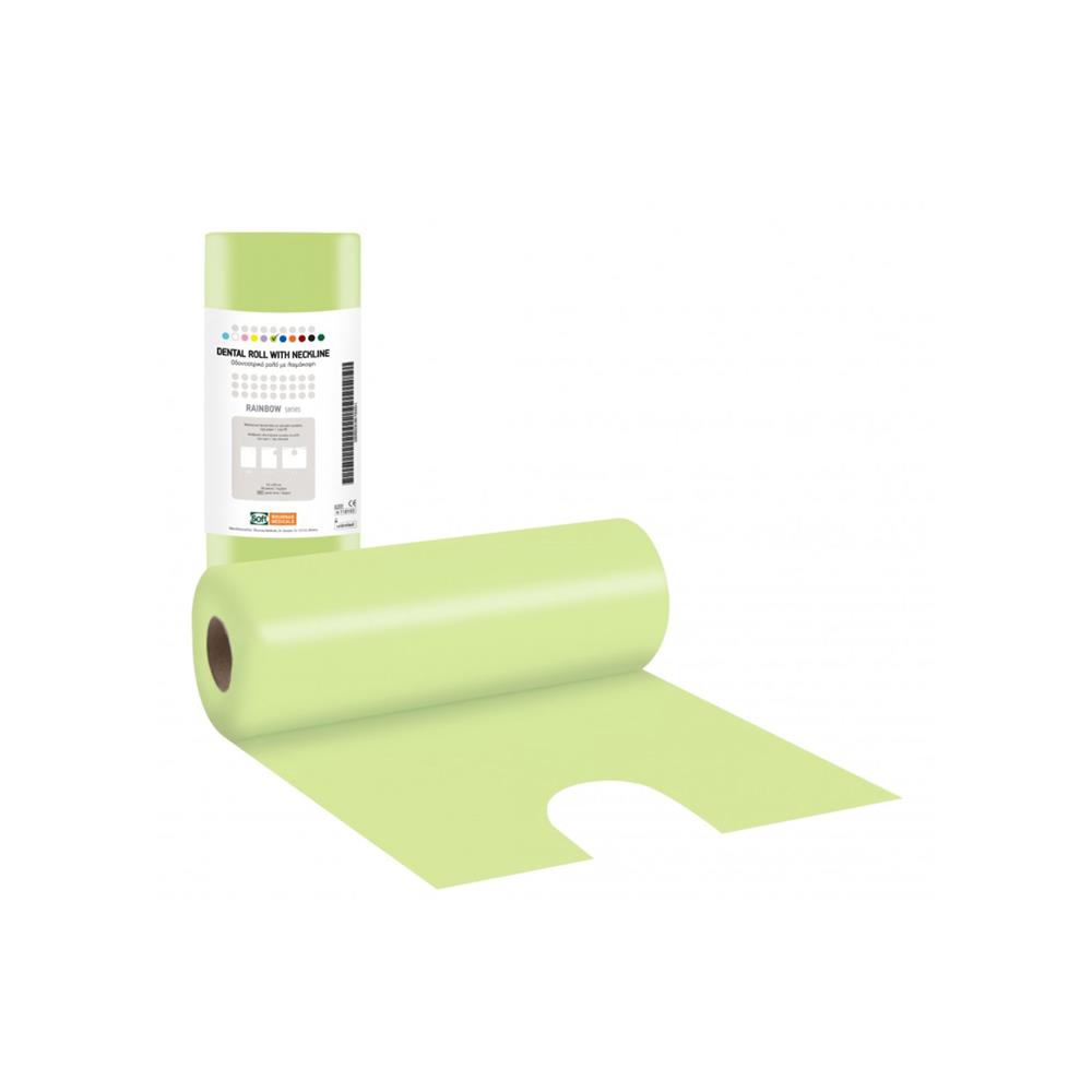 Dental bib in a roll with a neckline of great absorbency and durability.