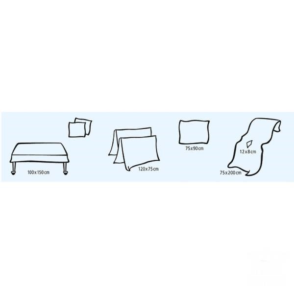 The set contains all the items needed for draping the patient including a gynaecology/cystoscopy drape with adhesive aperture 8x12 cm as well as separate leggings.