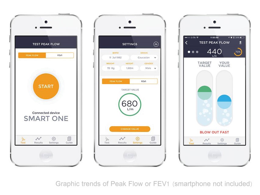 Ροόμετρο ψηφιακό Smart One peak flow με FEV1 σε smartphone